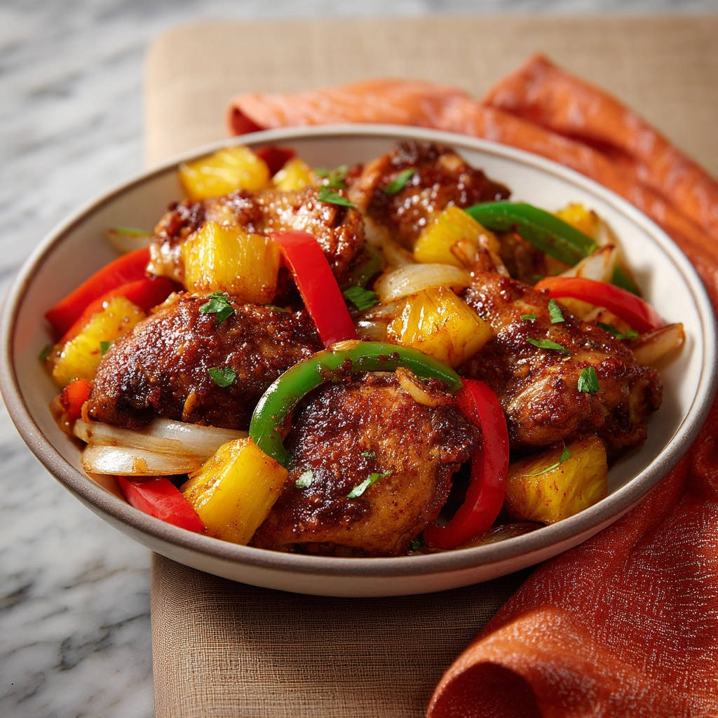 This dish is best enjoyed fresh, but you can definitely prep elements ahead. You can cut the chicken and vegetables earlier in the day. The cooked dish can be stored in an airtight container in the refrigerator for 3-4 days. Reheat gently on the stovetop over medium heat or in the microwave. The sauce might thicken further upon cooling, so you might need to add a splash of water or pineapple juice when reheating.