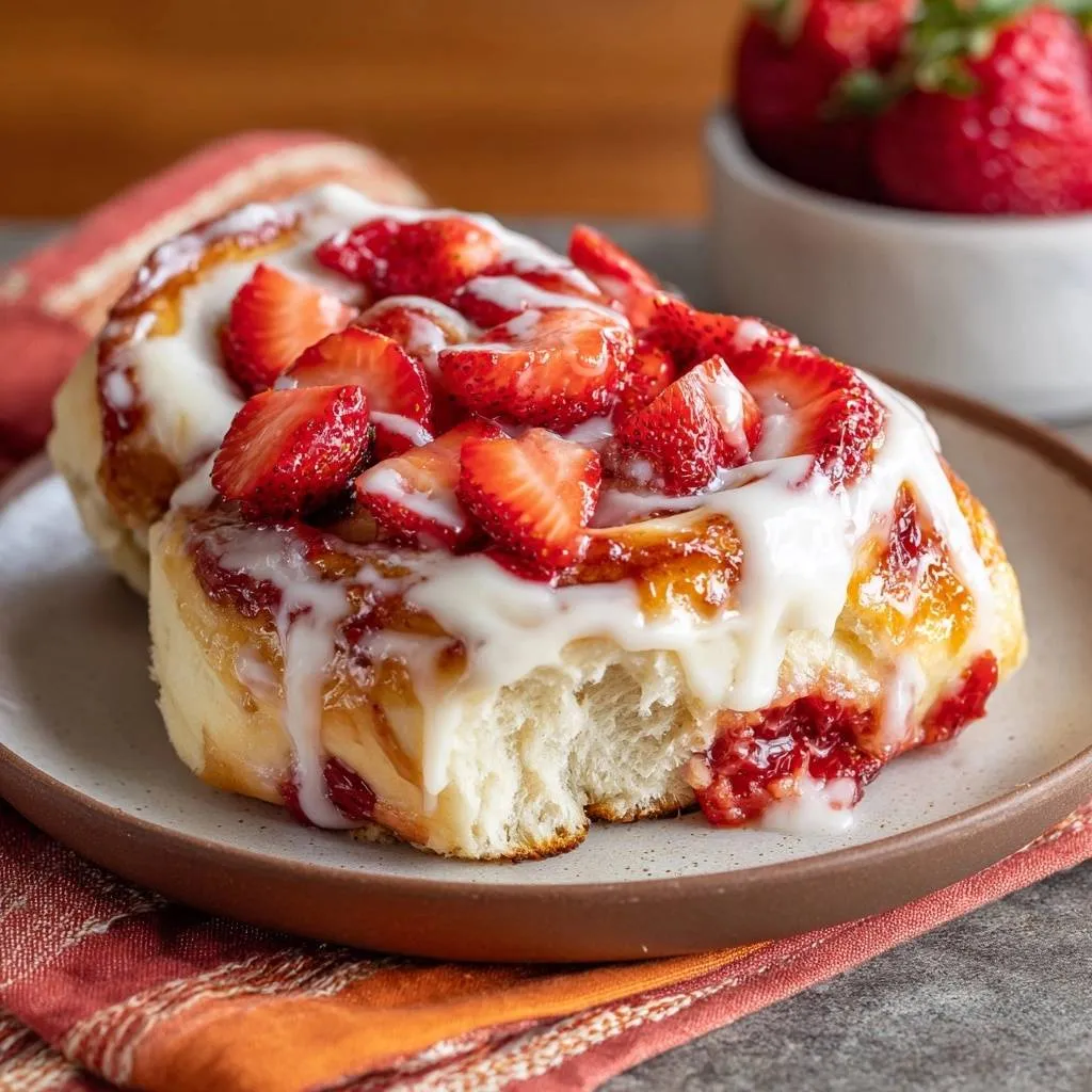 - Ice and top: Beat cream cheese, butter, powdered sugar, and vanilla until smooth. Thin with milk. Drizzle over warm rolls. Scatter chopped fresh strawberries on top. Serve fresh for perfect fluffy texture.