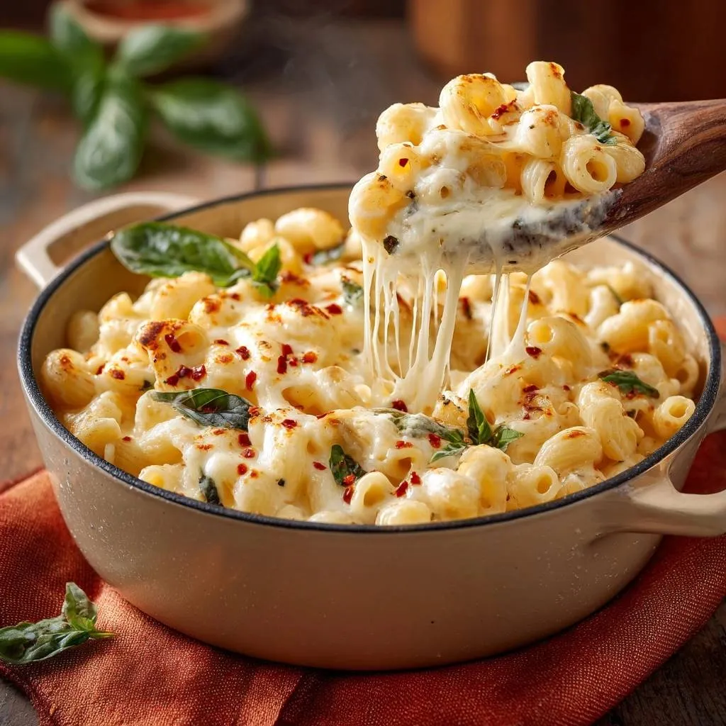 Therefore, you get that ultra-smooth, stretchy sauce every time, loaded with tangy bursts from sun-dried tomatoes and bright pops of fresh basil. It elevates the classic into something irresistible. No more takeout cravings when this comfort food hits the table.