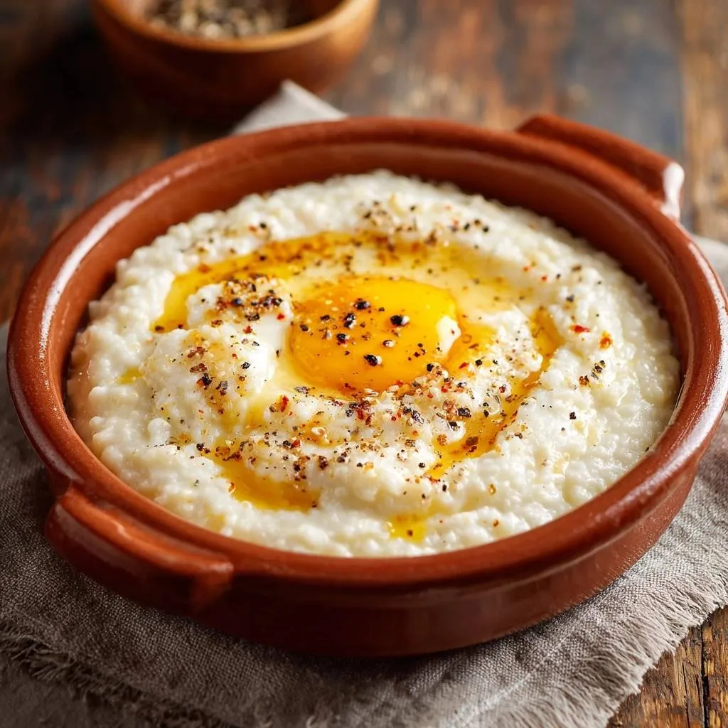 Perfectly smooth, creamy grits topped with a runny egg, olive oil, and pepper. Say goodbye to lumpy grits forever with this simple trick!