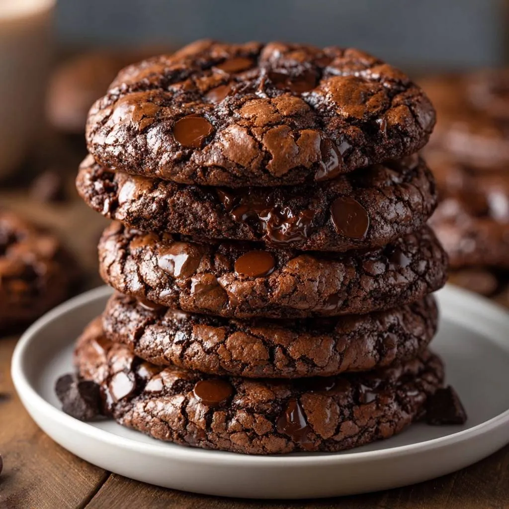 Thick, fudgy double chocolate cookies that stay tall and chewy with a simple chill-and-scoop method. Perfect for milk dunking!