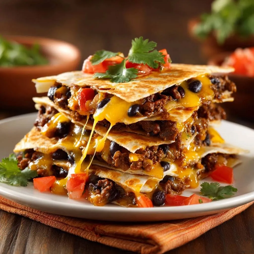 Crispy cheesy beef and black bean quesadillas with a moisture-lock filling method for golden, non-soggy tortillas every time.