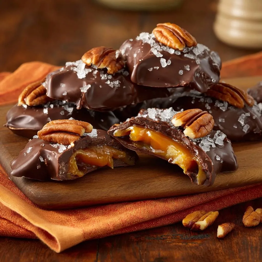 Ultra-smooth homemade turtles with gooey caramel, toasted pecans, and dark chocolate, topped with flaky sea salt. No grainy caramel thanks to a simple trick!