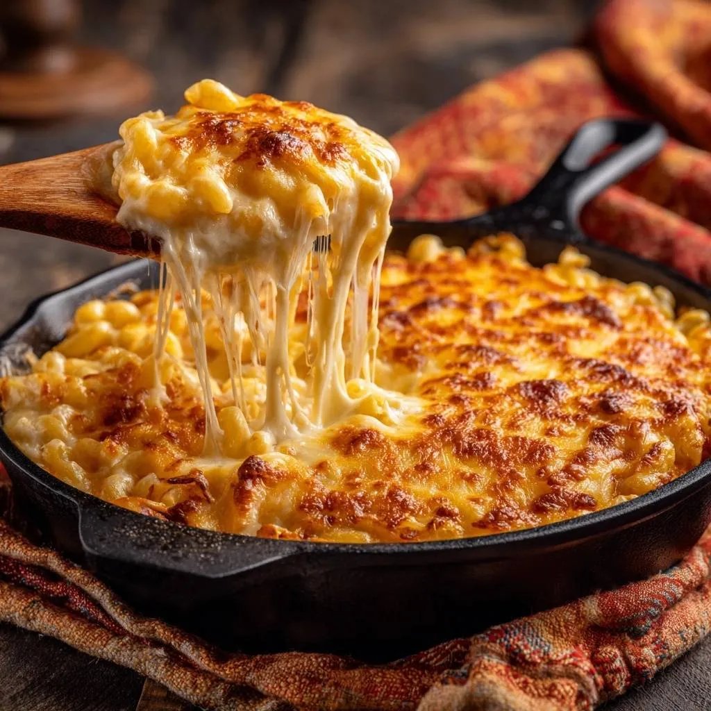 Foolproof cast iron skillet mac and cheese with ultra-smooth, stretchy sauce and golden crust. No more grainy cheese!