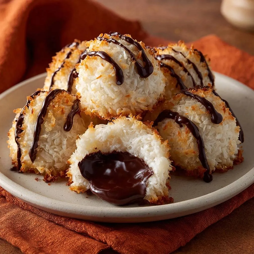 Foolproof chocolate-filled coconut macaroons with perfect moisture and gooey dark chocolate ganache center. No more dry macaroons!