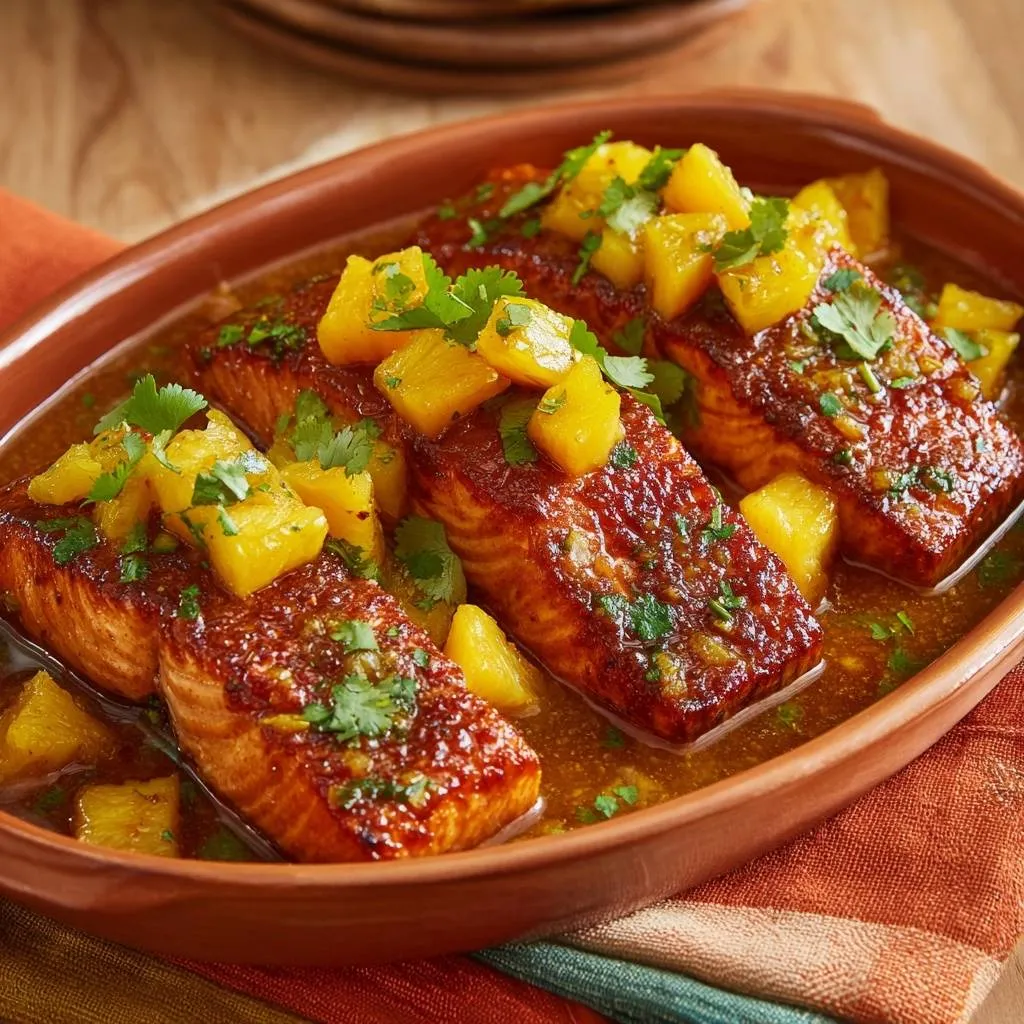 Juicy pineapple glazed salmon baked low and slow to lock in moisture, then broiled for perfect caramelization. Say goodbye to dry salmon forever!