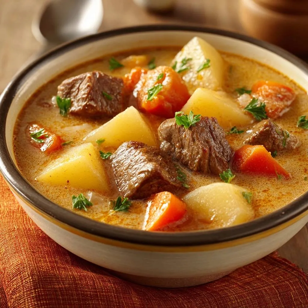 Fall-apart tender beef stew with potatoes and carrots. Simple sear-and-simmer method ensures juicy, melt-in-your-mouth beef every time.