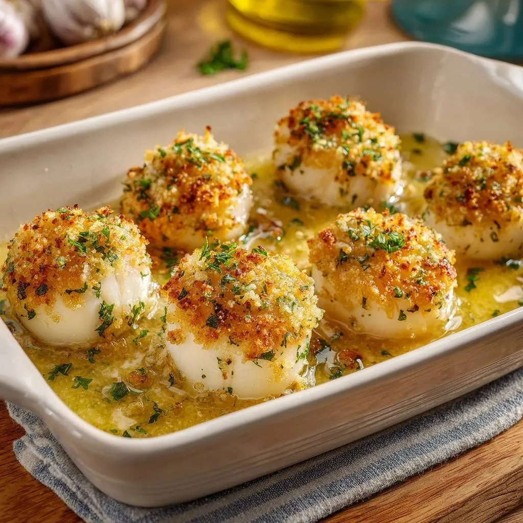 Tender, juicy sea scallops with a golden garlic parsley crumb crust. Foolproof quick-sear and flash-bake method prevents rubbery texture.
