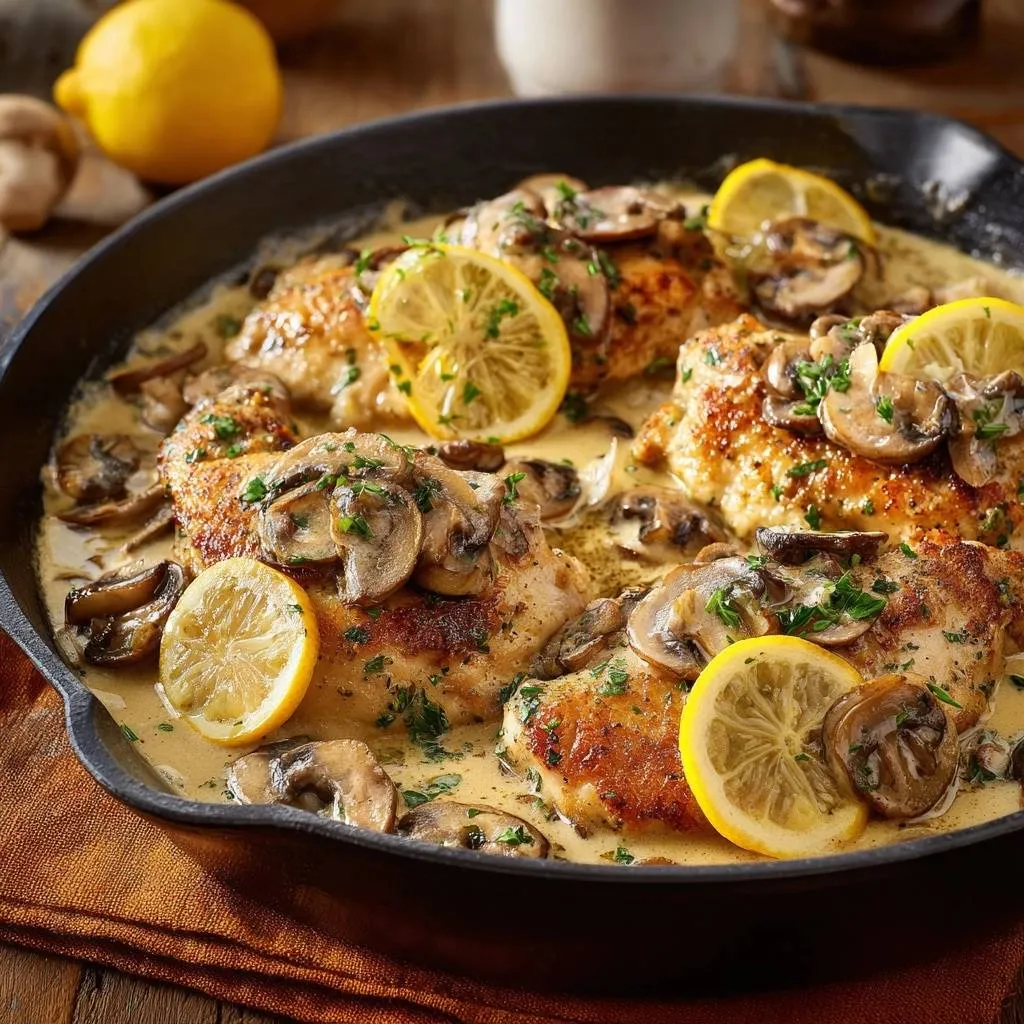 Juicy seared chicken breasts in a silky lemon cream sauce with golden mushrooms. Foolproof one-pan recipe for tender, flavorful weeknight dinners.