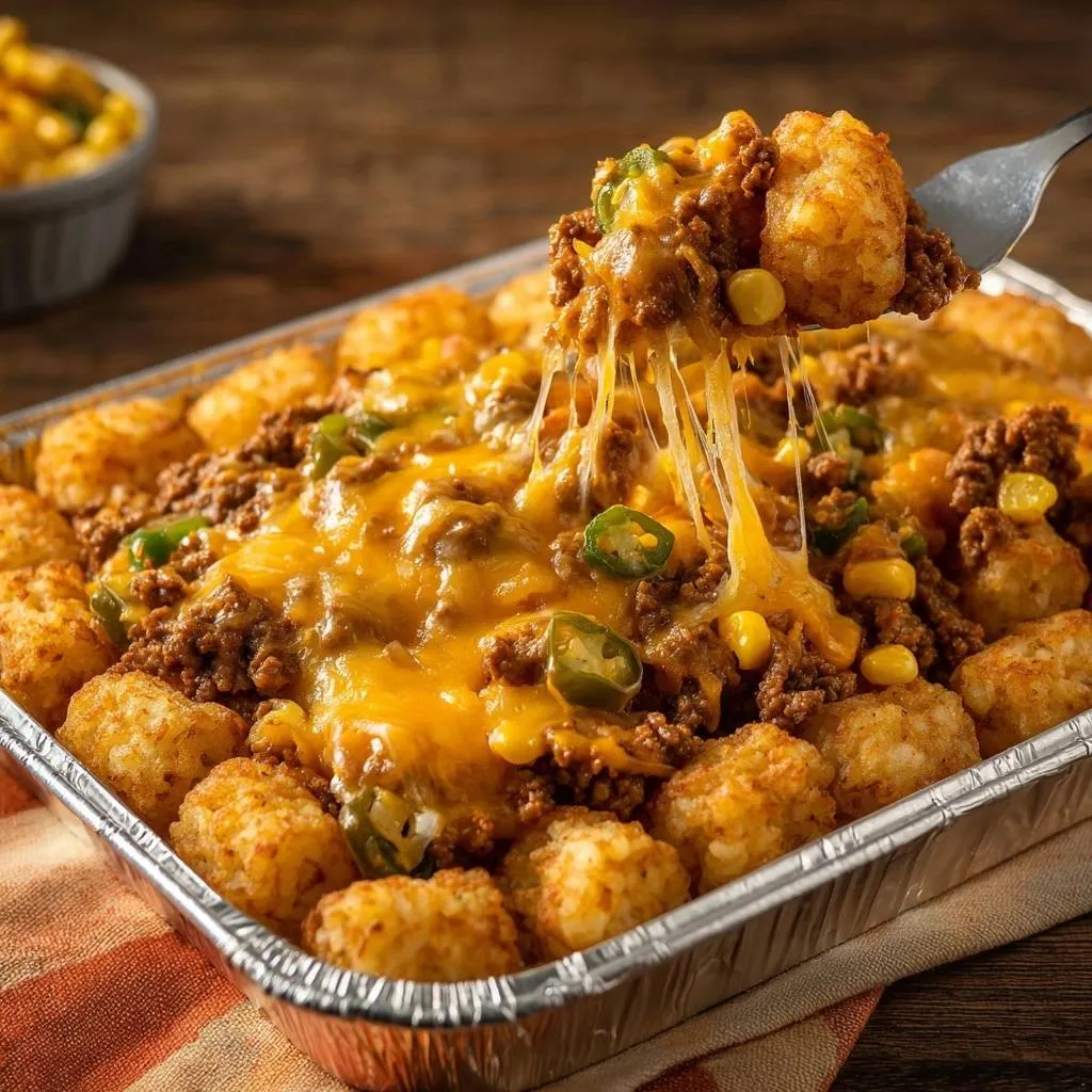 Crispy tater tot casserole with spicy beef, jalapeƱos, corn, and melty cheddar. No soggy tots thanks to high-heat uncovered baking.