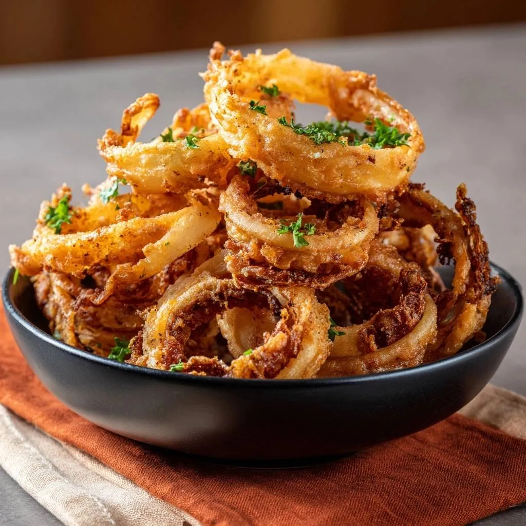 Shatteringly crisp homemade onion rings that stay crunchy with a simple soak-and-dry trick to remove excess moisture.