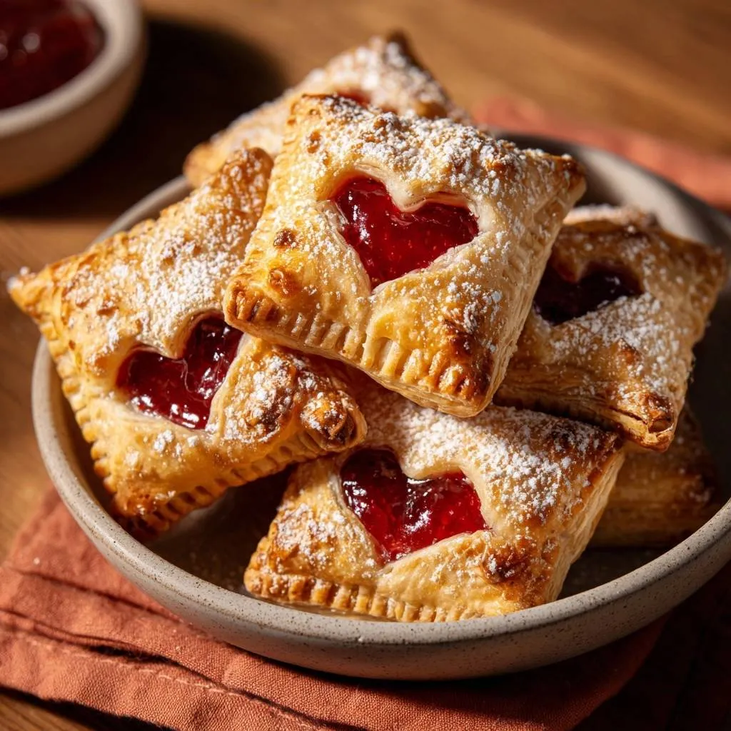 Homemade heart-shaped pastries with flaky puff pastry and vibrant raspberry jam that stay perfectly sealed thanks to a chill-before-bake trick.