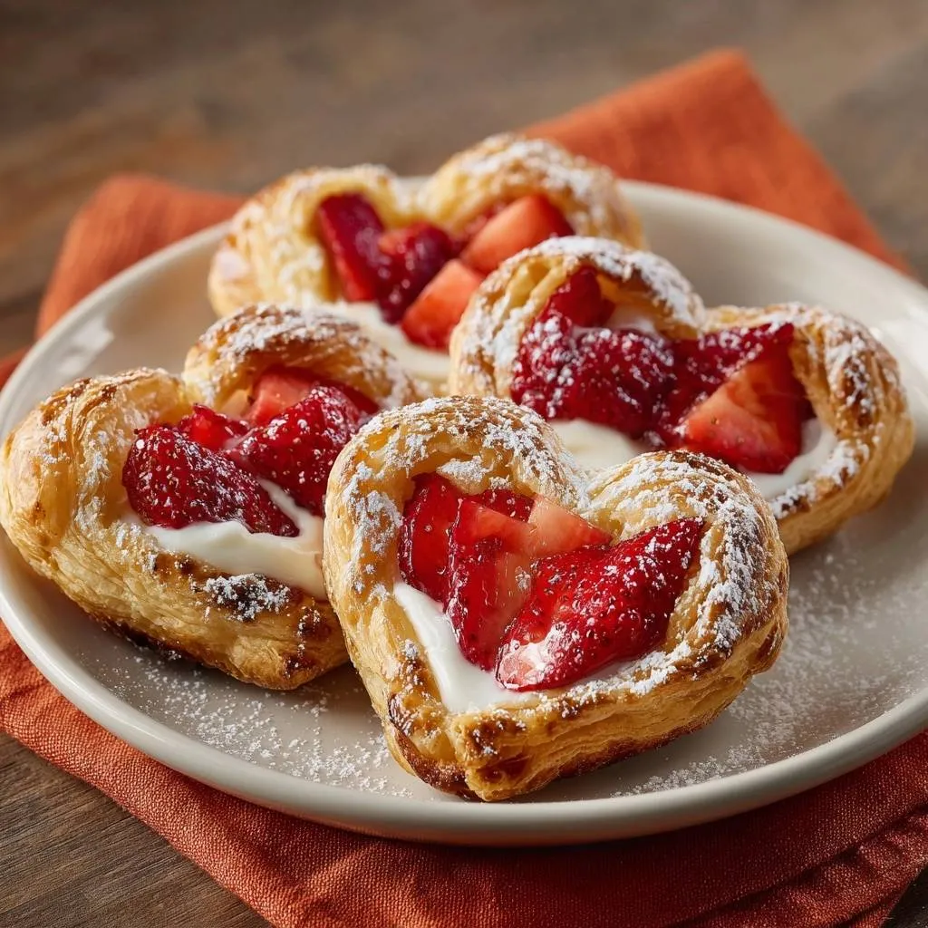 Flaky puff pastry hearts filled with cream cheese and a cornstarch-thickened strawberry mix that prevents sogginess. Perfect for Valentine’s Day or brunch.
