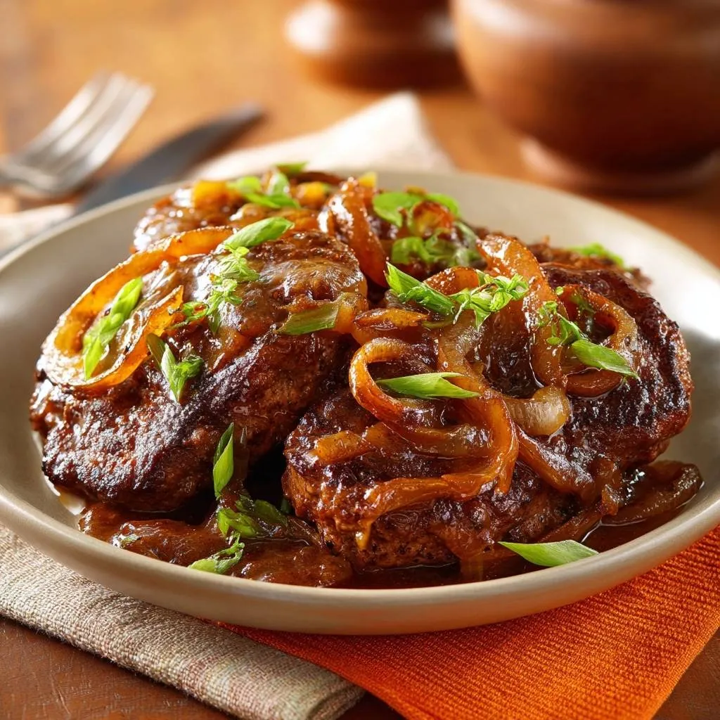 Tender, juicy beef patties smothered in caramelized onions with a simple sear-and-simmer trick for perfect moisture every time.
