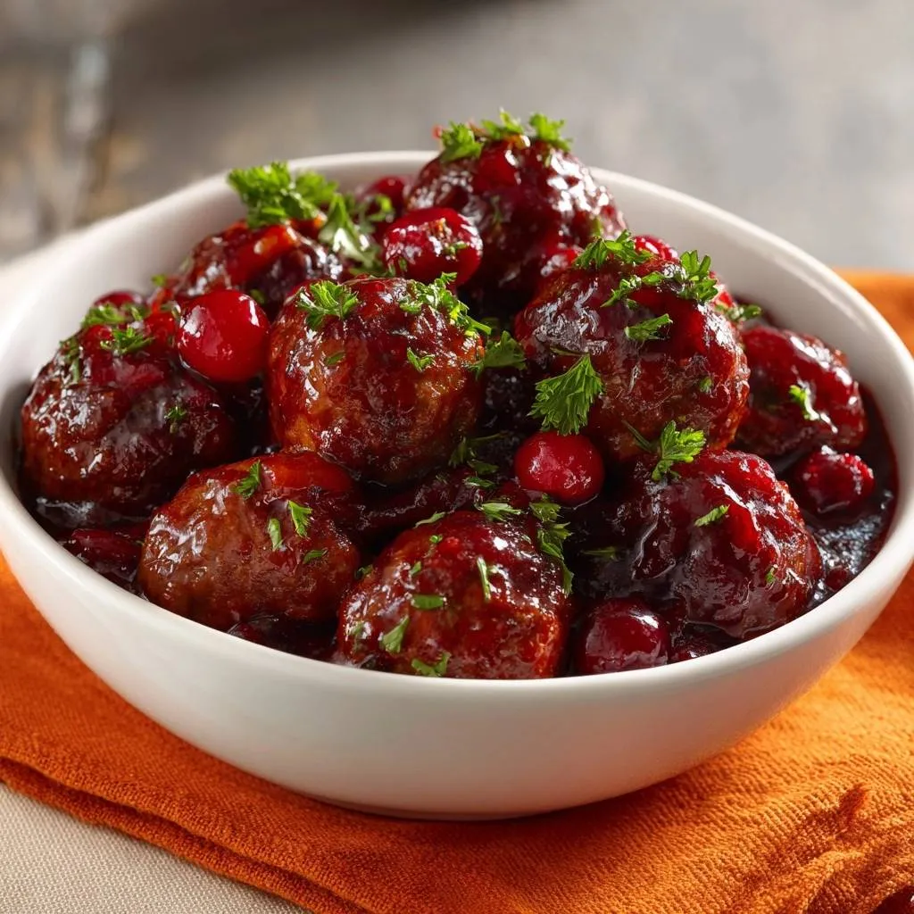 Juicy cranberry glazed meatballs using a panade technique for tender, moist results. Perfect for game day or holidays with sticky cranberry glaze.
