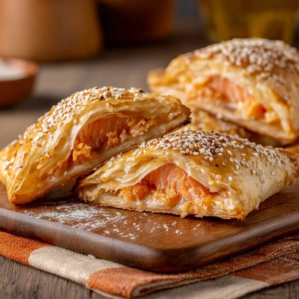 Ultra-crispy salmon sesame puffs with flaky puff pastry and no soggy bottoms, thanks to a chill-and-preheat trick for perfect golden layers.