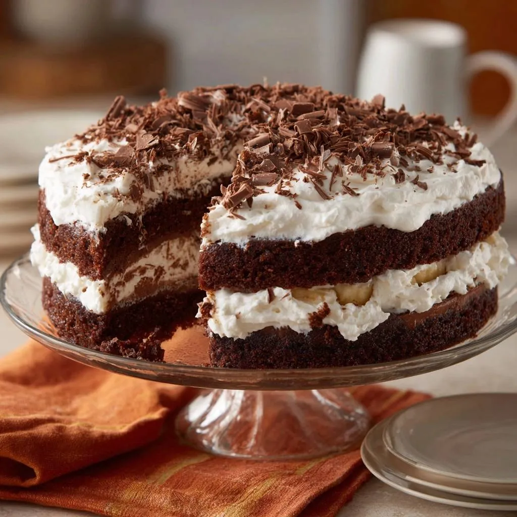 Rich chocolate cake layered with fresh bananas and stable whipped cream that stays perfect and never runny. Foolproof technique for fluffy, stiff peaks.