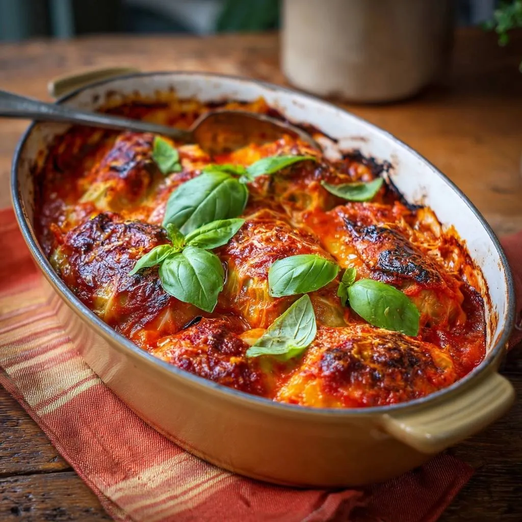 Juicy beef-stuffed cabbage rolls in rich tomato sauce, topped with golden melted cheese. Perfectly pliable leaves using a simple blanch-and-ice method—no more tears!