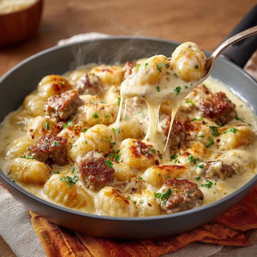 Foolproof creamy sausage gnocchi with crispy exteriors and fluffy insides. Boil-then-sear method prevents gummy texture in a rich, cheesy sauce.