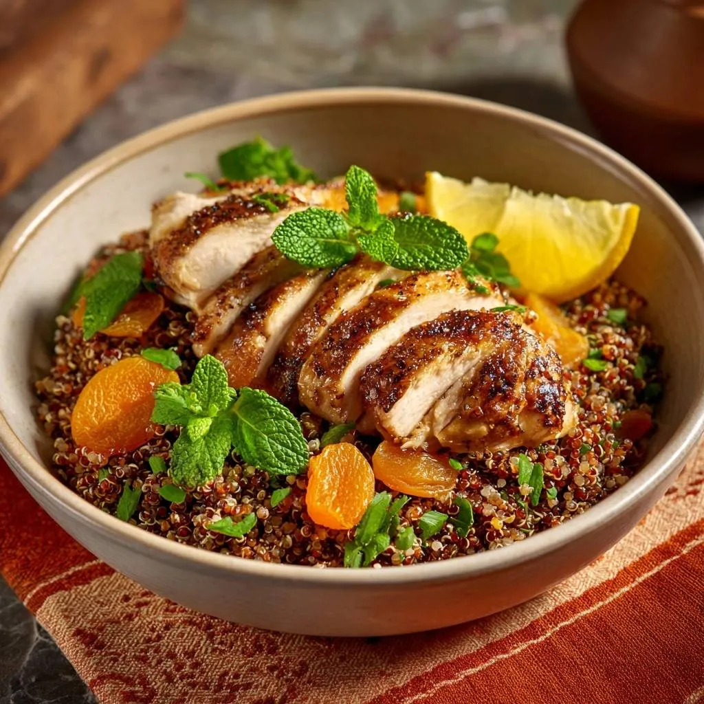 Juicy seared chicken breast with sweet apricots, fresh mint, and lemon over fluffy quinoa. No more dry chicken—pound, sear, and rest for perfect results every time.