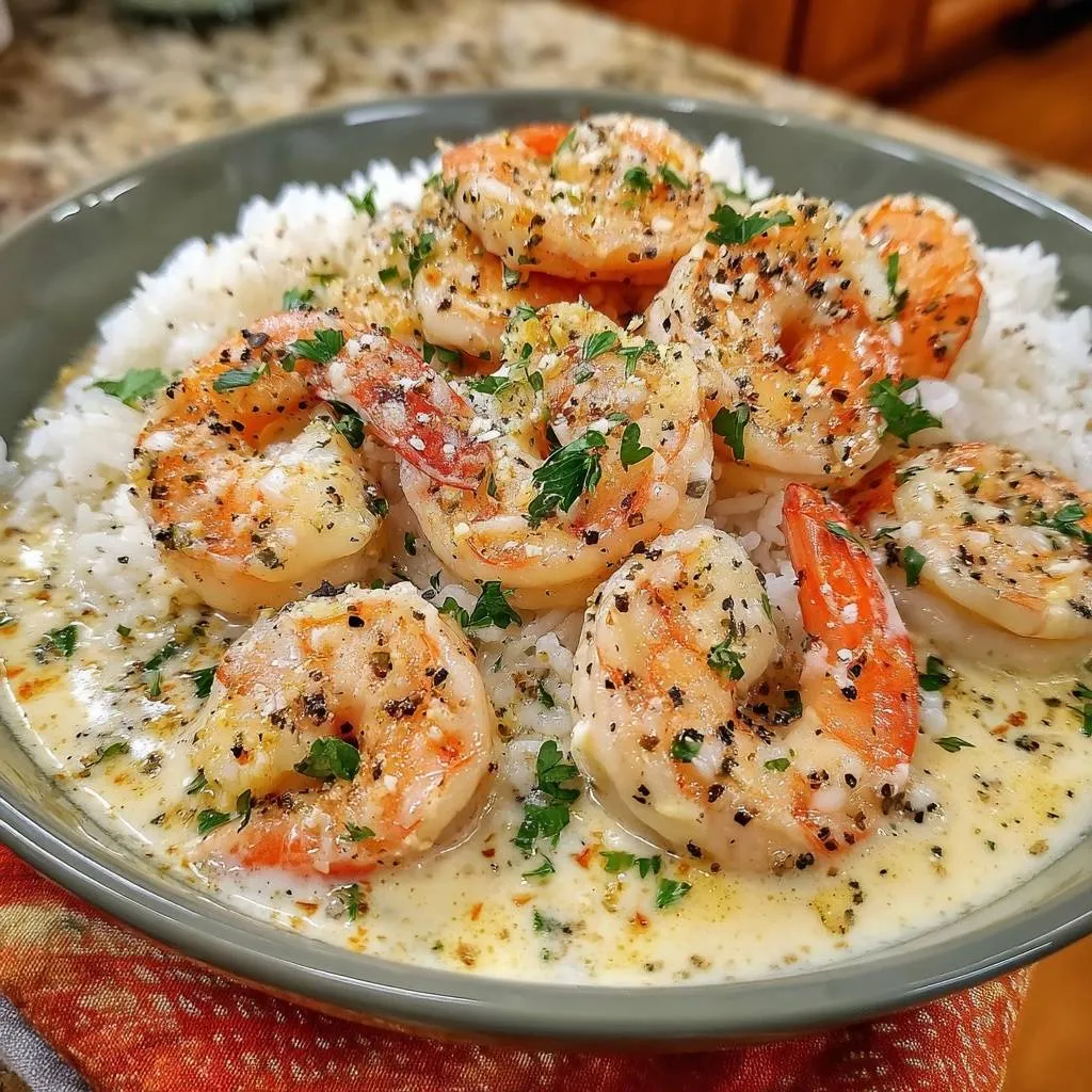 Foolproof creamy garlic shrimp with juicy, plump texture over perfect rice. Sear-and-simmer method prevents rubbery shrimp every time.