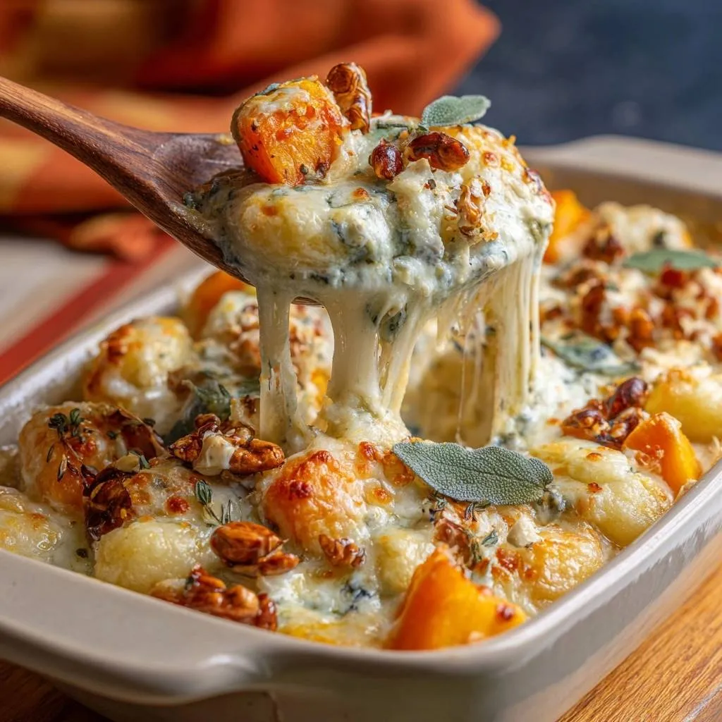 Perfect pillowy gnocchi with crisp exterior in a creamy gorgonzola sauce, roasted butternut squash, and walnuts. Never soggy bake!