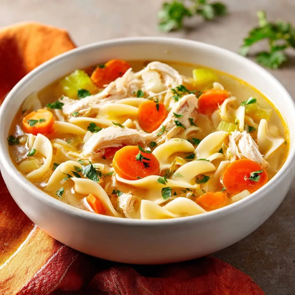 Cozy chicken noodle soup with perfectly chewy noodles that stay firm and broth that remains flavorful – no more mush!