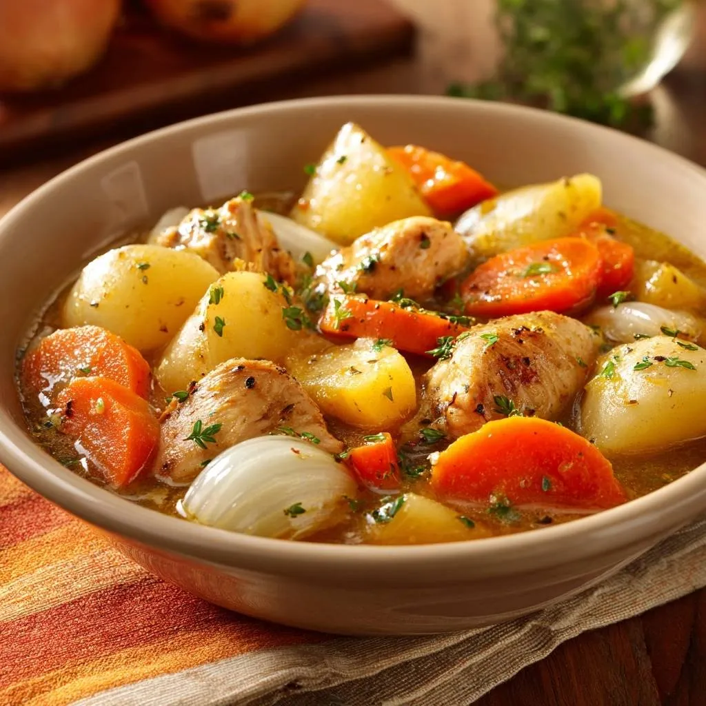 Foolproof chicken potato stew with tender, juicy chicken using a sear-first method. Hearty, flavorful comfort food with potatoes, carrots, and onions.