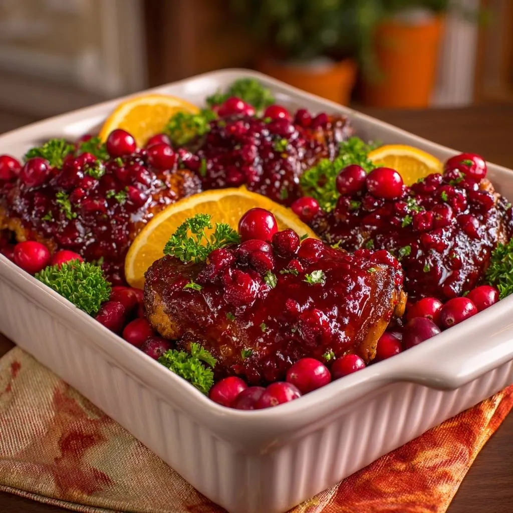 Juicy, tender bone-in chicken thighs with crispy skin, glazed in a sweet-tart cranberry orange sauce. Foolproof double-cook method ensures no more dry meat!