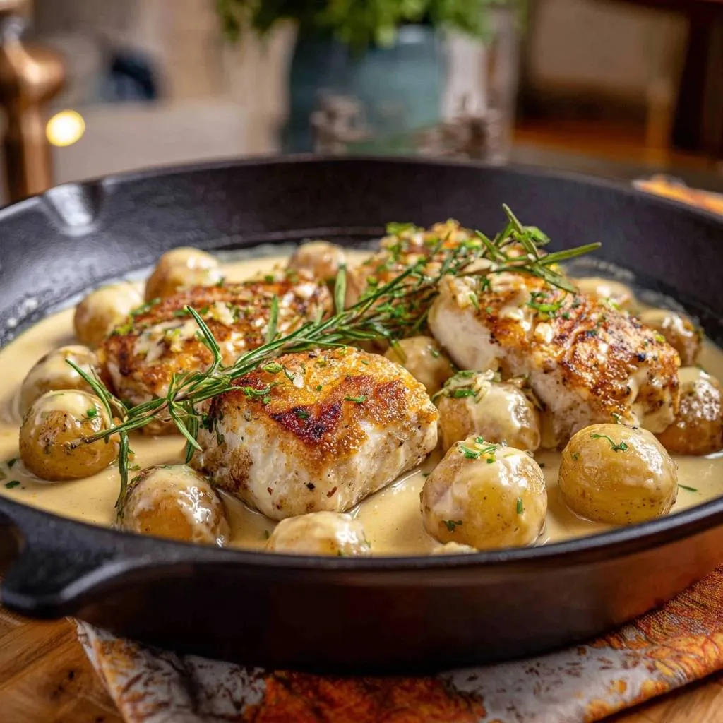 Perfectly moist pan-seared cod with crispy crust and creamy rosemary baby potatoes. No more dry fish!