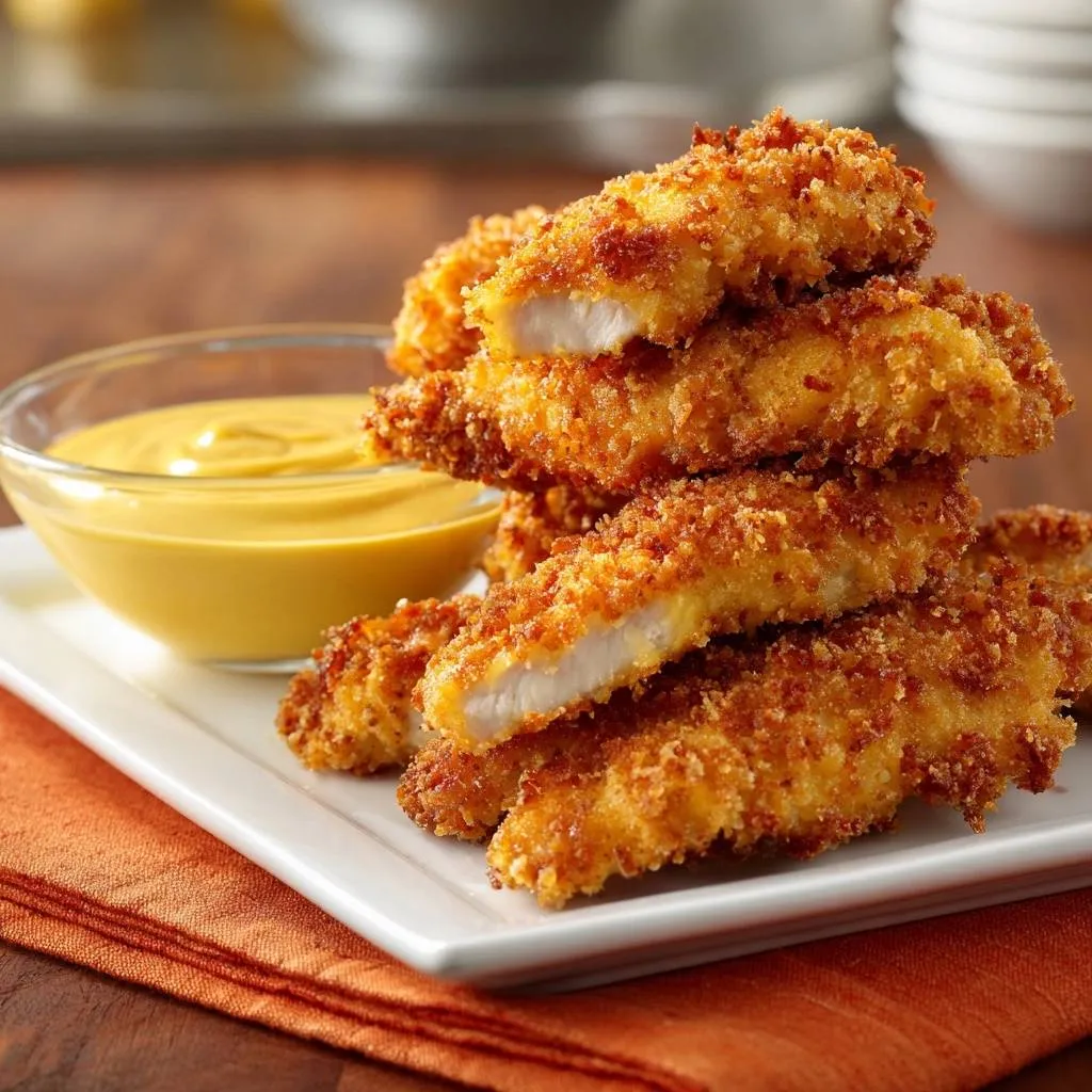 Foolproof crispy chicken tenders with double-dip panko breading and quick chill for ultra-crunchy results that stay crisp even with creamy mustard sauce.