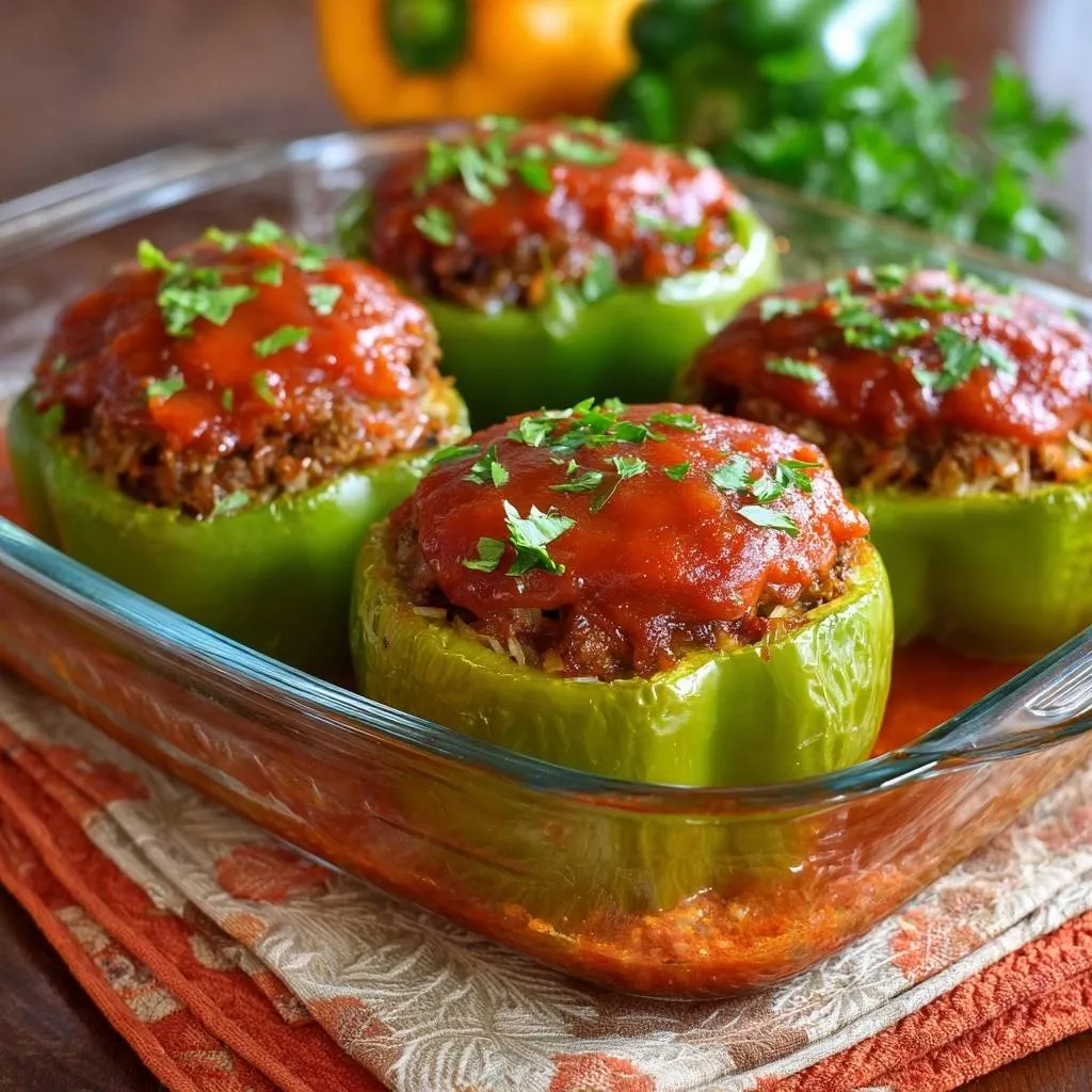 Foolproof stuffed bell peppers with a blanching trick to prevent sogginess, featuring tender-firm peppers and juicy beef-rice filling.
