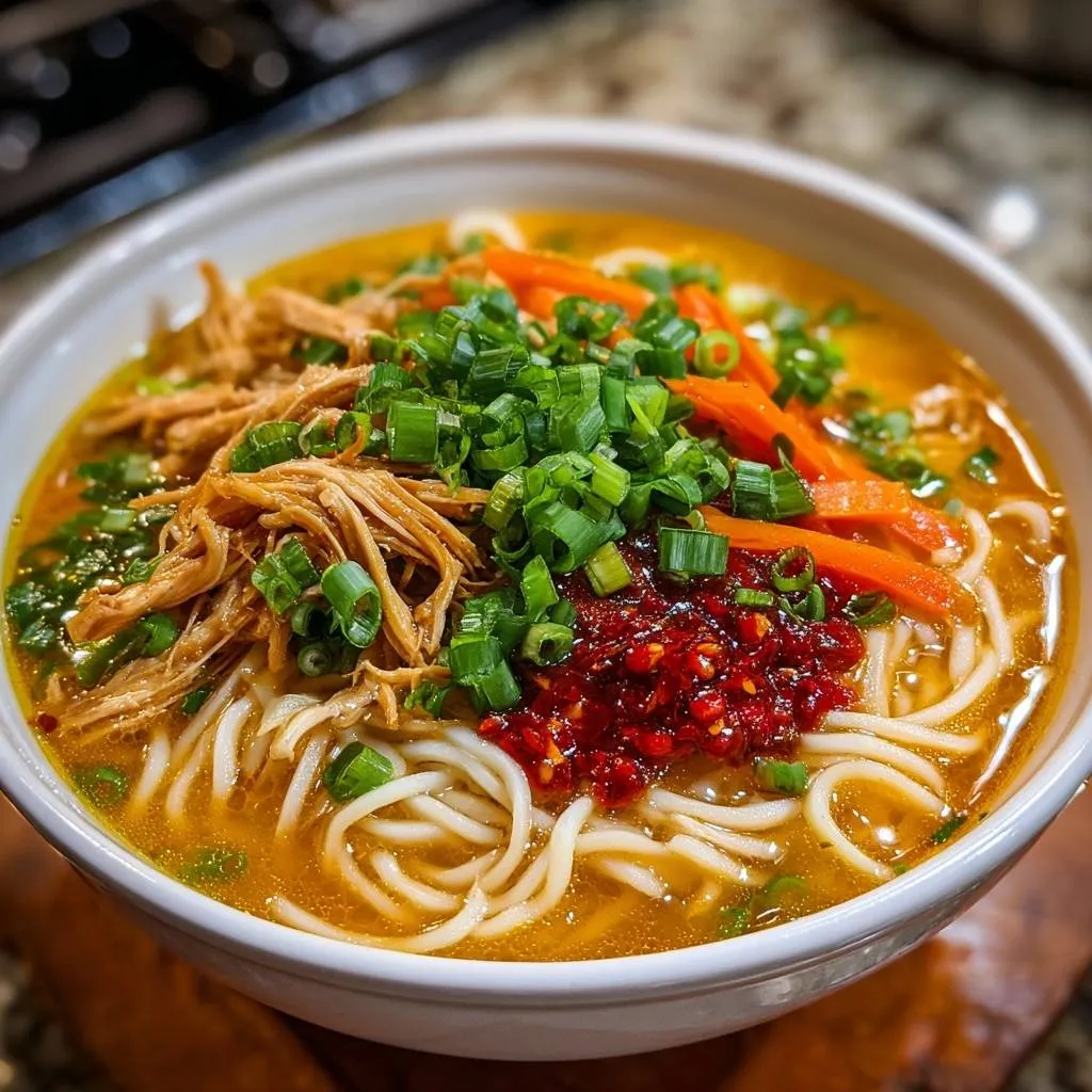 Quick spicy ramen with shredded chicken, crisp carrots, and chili oil. No soggy noodles thanks to a simple shocking trick for perfect chew every time!