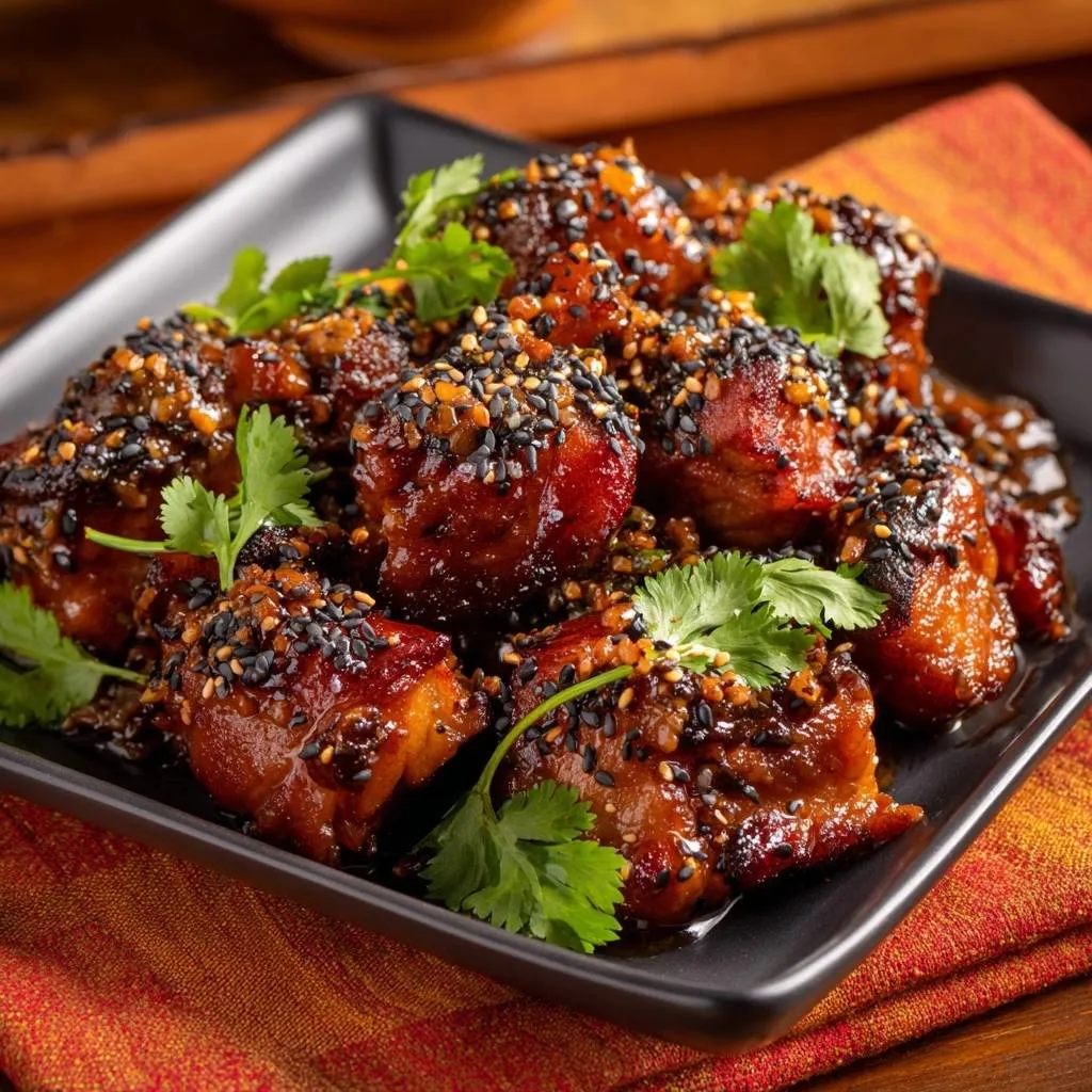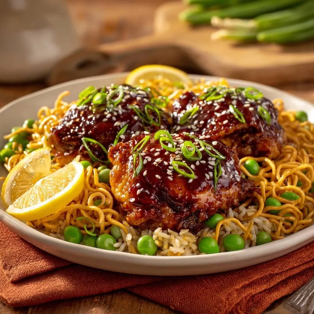 Learn the secret to perfectly crispy skin on glazed chicken thighs using a cold-pan rendering technique and a thick mahogany sesame glaze.