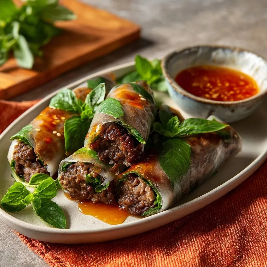 Perfect rice paper spring rolls with juicy glazed beef, fresh basil, and sesame seeds. Foolproof no-stick technique for pro-level rolls every time.