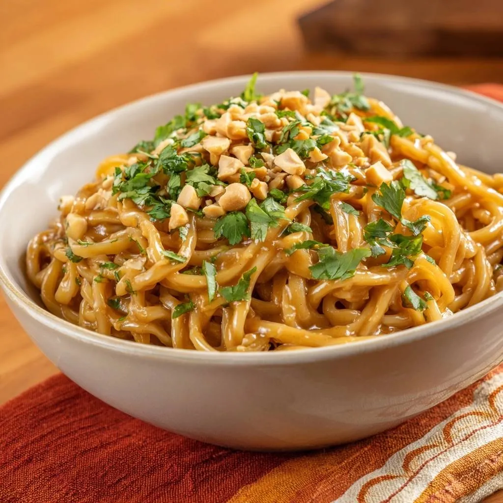 Creamy peanut noodles with firm, al dente texture using reserved starchy water for perfect sauce emulsification. No more gummy noodles!