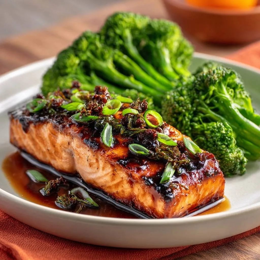 Foolproof honey soy glazed salmon with steamed broccoli. Sear skin-side first to lock in juices for flaky, moist perfection every time.