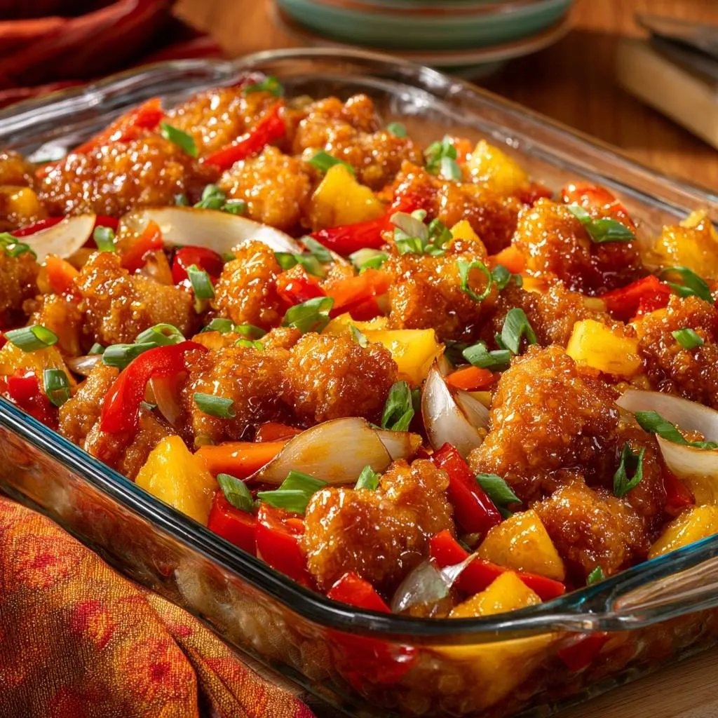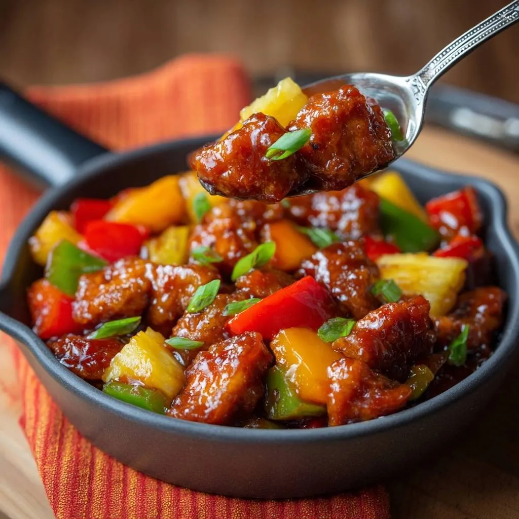 Crispy double-fried chicken with vibrant peppers and juicy pineapple in a glossy sweet and sour sauce that stays crunchy.