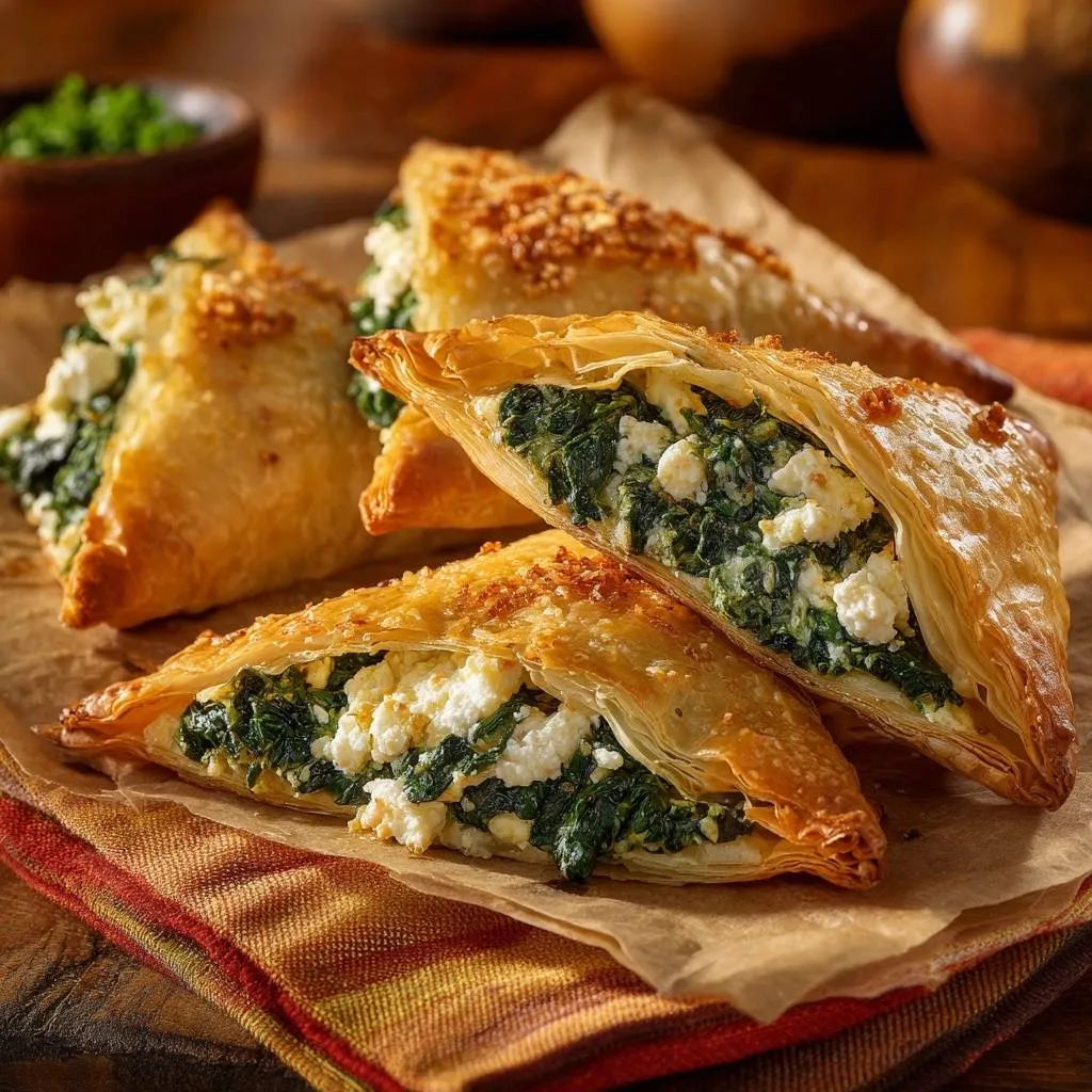 Crispy spinach feta phyllo triangles with a triple-drained filling to prevent soggy centers. Flaky, golden perfection every time.