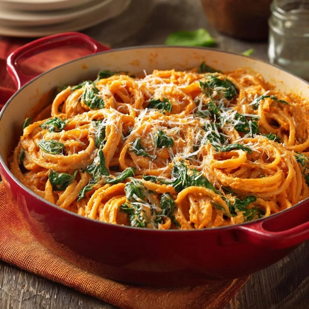Creamy Roasted Red Pepper Pasta with Spinach