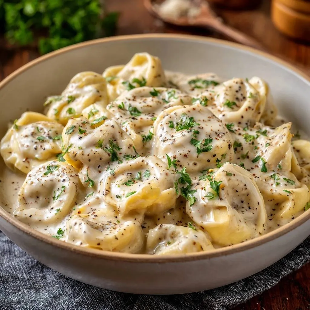 A foolproof recipe for Creamy Garlic Parmesan Tortellini using a gentle poaching method to prevent pasta breakage and a silky emulsion technique for a thick, glossy sauce.