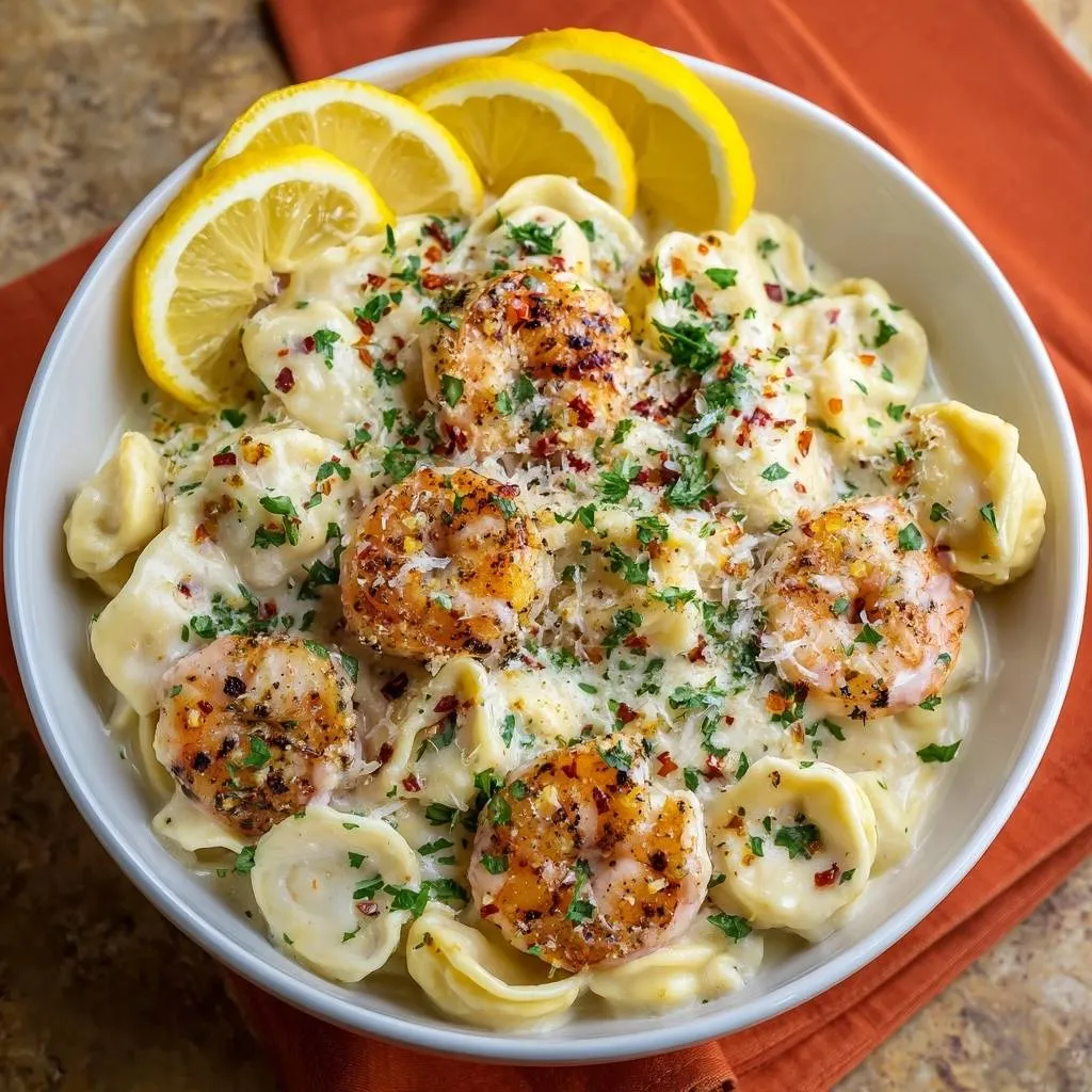 Learn how to make restaurant-quality Creamy Garlic Shrimp Tortellini with a velvety sauce that never turns watery. The secret is in the starch and emulsion.