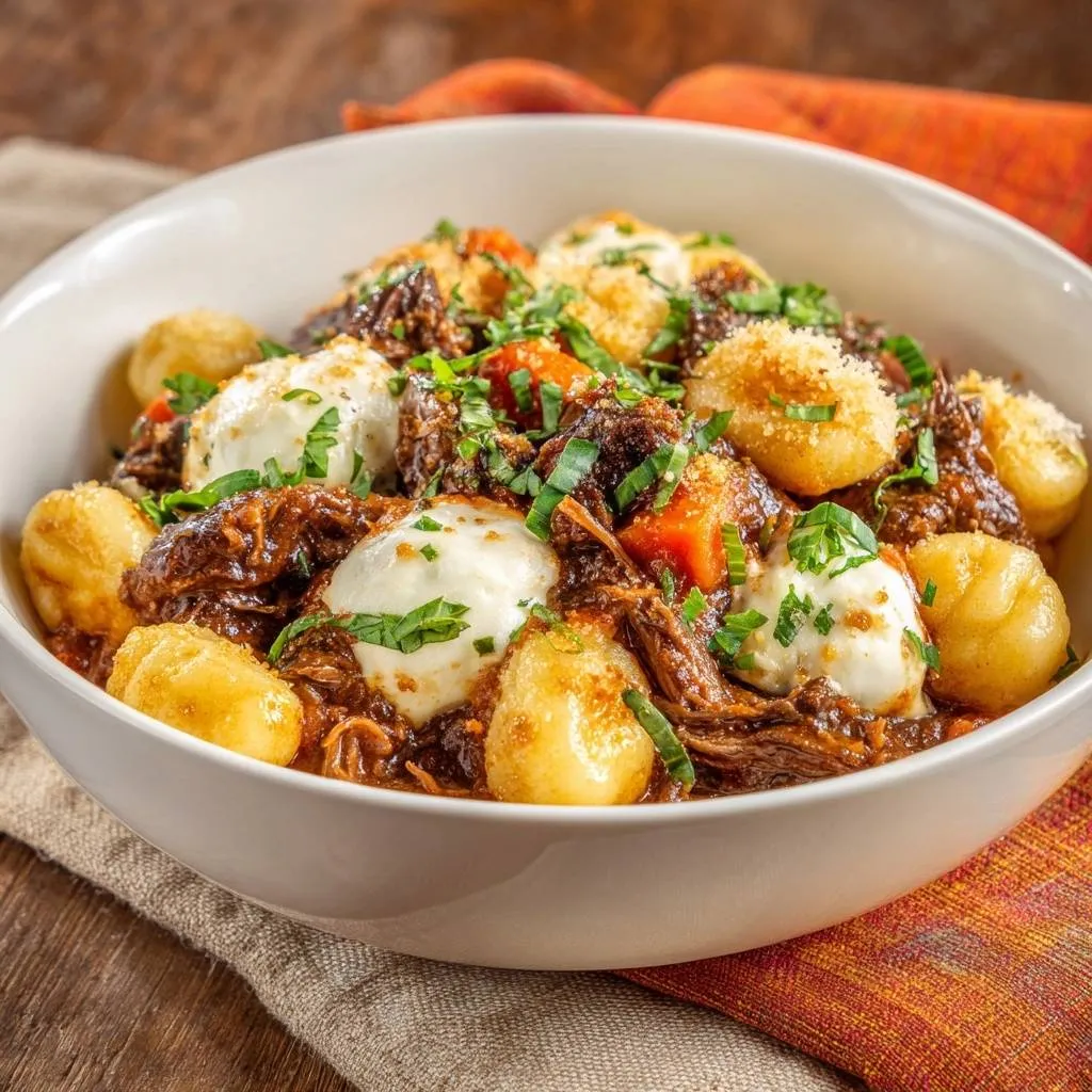 Tender short rib ragu topped with crispy-edged gnudi, creamy burrata, and toasted panko. Foolproof method ensures pillowy gnudi without gumminess.