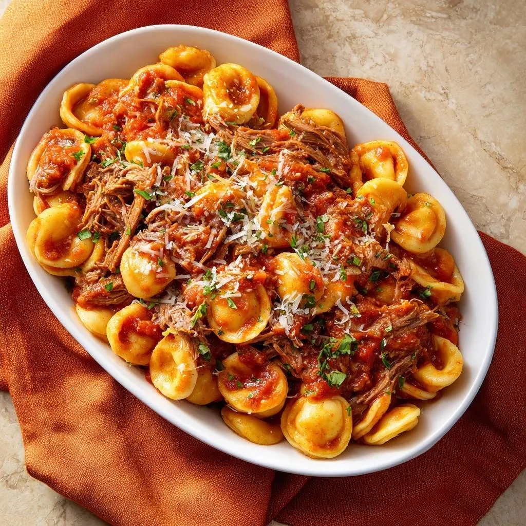 Fall-apart tender beef ragu braised low and slow, tossed with cheesy tortellini for cozy perfection. No more chewy beef!