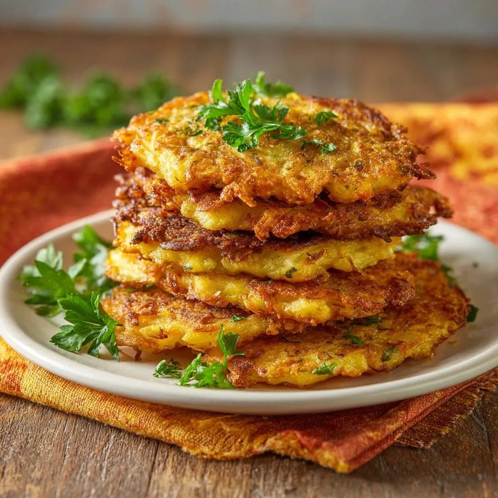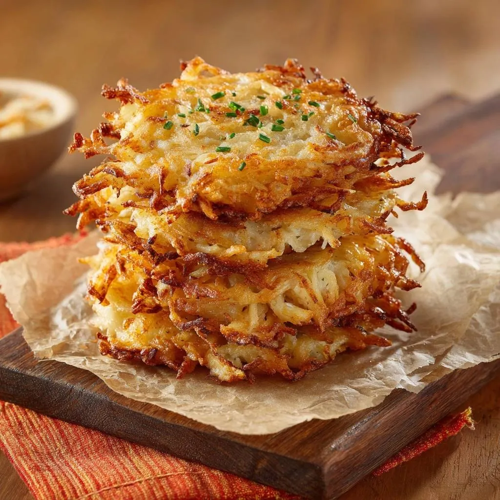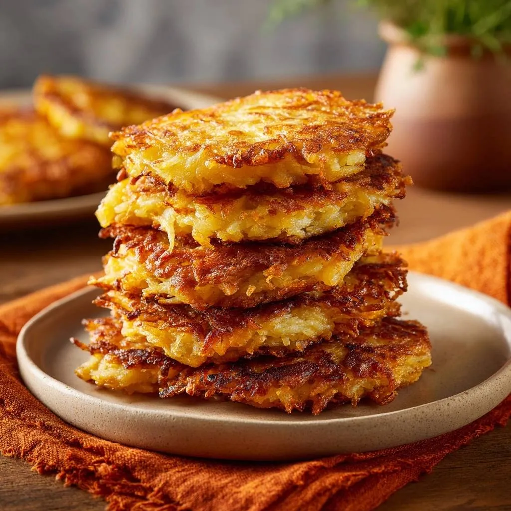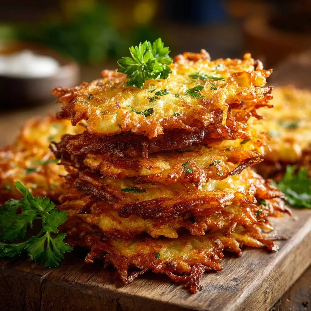 Crispy potato latkes with a simple moisture-squeezing step for perfect crisp edges and tender insides. Ideal for Hanukkah, breakfast, or sides.
