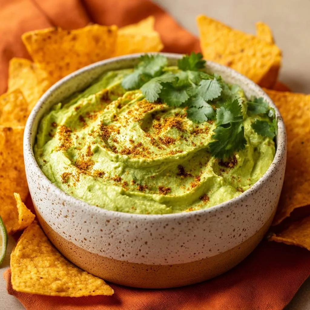 A vibrant, creamy avocado dip that uses a unique pH-balancing technique and emulsification to prevent browning for hours.