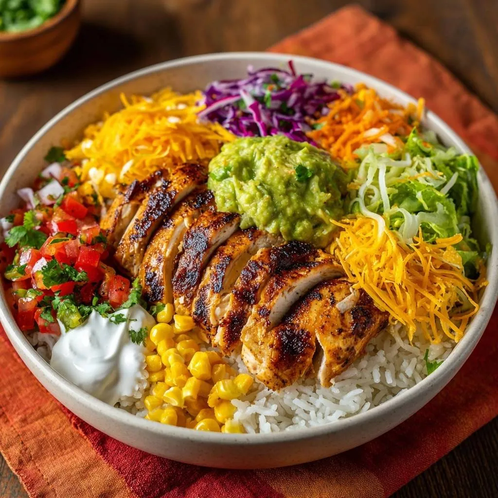 Loaded Chicken Burrito Bowl with Juicy Brined Chicken
