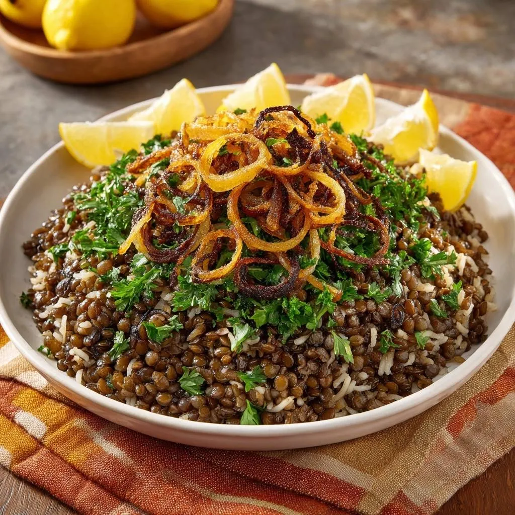 Ultra-crispy golden onions over fluffy lentil rice with a low-slow fry technique that prevents scorching for restaurant-worthy crunch.