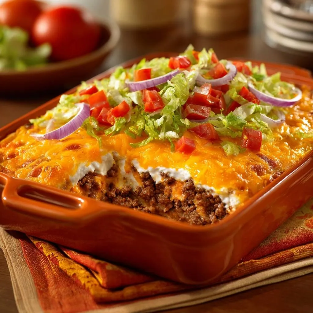This dish is at its absolute peak the moment it leaves the oven. However, you can prep the components in advance. Brown and season the beef a day early and store it in the fridge. You can also chop your lettuce, onions, and tomatoes ahead of time and keep them in airtight containers.