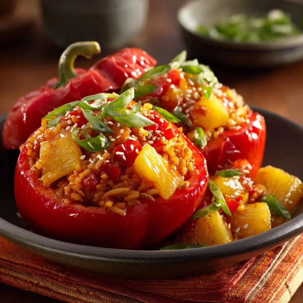 What sets these stuffed peppers apart is their unique tropical twist. The combination of sweet pineapple and tangy notes creates a refreshing contrast to the savory chicken.